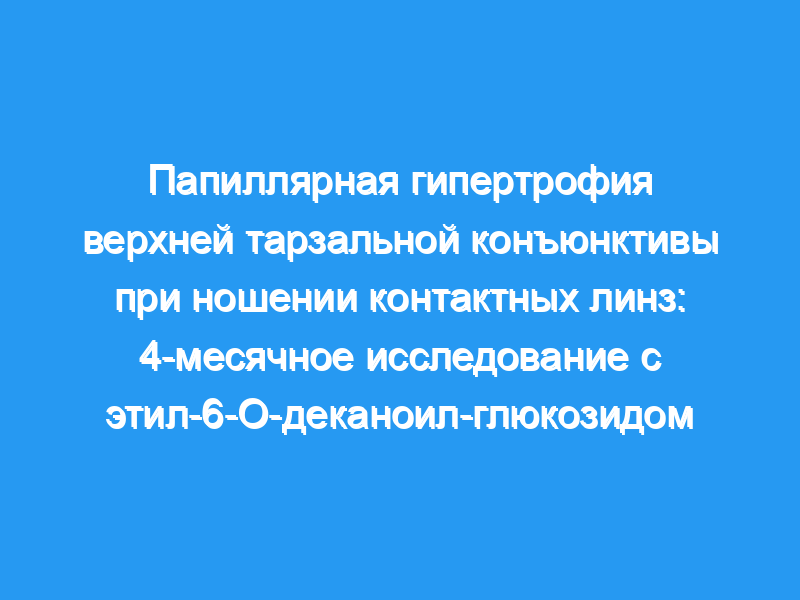 Мы изучили потенциальное влияние этил-6-О-деканоил-глюкозида (EDG) на гипертрофию сосочков у лиц, носящих контактные линзы, которые были приняты на работу на основании гипертрофии сосочков и длительного ношения контактных линз. Растворы для ухода за контактными линзами представляли собой 0,00025% хлоргексидина ацетат (CHX) с 0,005% EDG или без него.