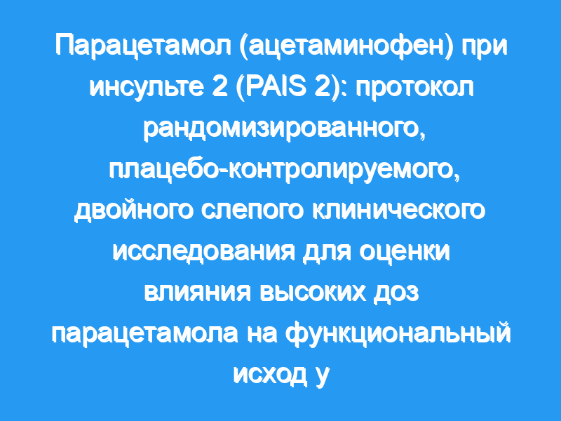 Обоснование: В первые часы после начала инсульта субфебрильная температура и лихорадка были связаны с плохим функциональным исходом. В первом исследовании «Парацетамол (ацетаминофен) при инсульте», рандомизированном клиническом исследовании с участием 1400 пациентов с острым инсультом, пациенты, получавшие высокие дозы парацетамола, показали большее улучшение по модифицированной шкале Рэнкина через три месяца, чем пациенты, получавшие плацебо, но эта разница не была статистически значимой. У 661 пациента с исходной температурой тела 37,0 °C или выше лечение парацетамолом увеличило шансы на функциональное улучшение (отношение шансов 1,43, 95% доверительный интервал: 1,02-1,97). Эта связь была также обнаружена у пациентов с температурой тела 36,5°C или выше (отношение шансов 1,31, 95% доверительный интервал 1,01-1,68). Эти выводы нуждаются в подтверждении.