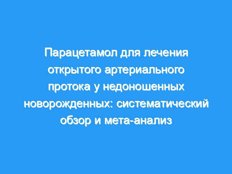 Мы провели систематический обзор и мета-анализ всех имеющихся данных для оценки эффективности и безопасности парацетамола для лечения открытого артериального протока (PDA) у новорожденных, а также для изучения влияния клинических переменных на риск закрытия. Источник данных: базы данных MEDLINE, Scopus и ISI Web of Knowledge, в которых используются следующие медицинские тематические рубрики и термины: парацетамол, ацетаминофен и открытый артериальный проток. Электронный и ручной просмотр тезисов конференций с международных совещаний соответствующих организаций. Ручной поиск по спискам ссылок всех подходящих статей. Выбор исследования: Исследования, сравнивающие парацетамол с ибупрофеном, индометацином, плацебо или без вмешательства для лечения КПК. Извлечение данных: Были собраны и проанализированы данные, касающиеся эффективности и безопасности.