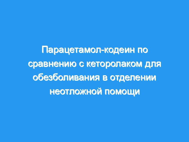 Парацетамол/кодеин эквивалентен кеторолаку при нетравматической боли и посттравматической боли, но превосходит его при острой боли и у пациентов с переломами и мышечной болью. Эти результаты свидетельствуют в пользу использования комбинации парацетамол/кодеин у пациентов, обращающихся к ЭД по поводу нетравматических или травматических болей в конечностях.