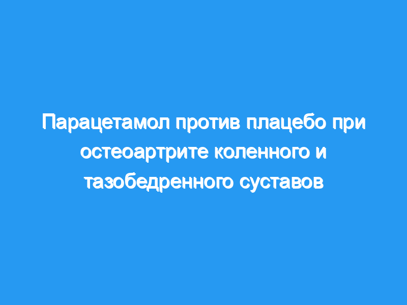 Парацетамол (ацетаминофен) широко рекомендуется в качестве анальгетика первой линии при остеоартрите бедра или колена. Однако по поводу этой рекомендации возникли разногласия, учитывая, что недавние исследования выявили незначительные эффекты парацетамола по сравнению с плацебо. Тем не менее, в предыдущих исследованиях не проводился систематический обзор и оценка литературы для изучения влияния этого препарата на конкретные участки остеоартрита, то есть на бедро или колено, или на используемую дозу.