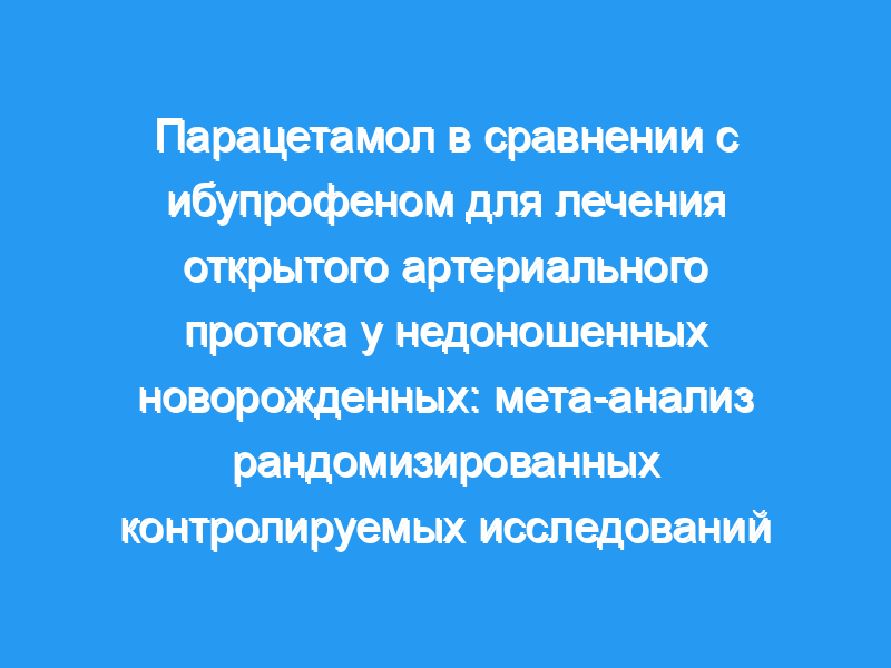 Были включены пять РКИ с участием 677 новорожденных. Эффективность первичного (отношение риска [ОР]: 1,03, р = 0,56) и общего закрытия КПК были сопоставимы между двумя препаратами (ОР: 1,02, р = 0,62). Новорожденные из двух групп были сопоставимы по частоте осложнений PDA, включая некротизирующий энтероколит (ОР: 0,86, р = 0,70), внутрижелудочковое кровоизлияние (ОР: 0,84, р = 0,55), бронхолегочную дисплазию (ОР: 0,69, р = 0,16) и ретинопатию недоношенных (ОР: 0,58, р = 0,15), а также риски сепсиса (ОР = 0,88, р = 0,48) и смерти (ОР: 1,45, р = 0,45) во время госпитализации. Однако лечение парацетамолом было связано с тенденцией к снижению риска почечной недостаточности (ОР: 0,20, р = 0,07) и значительному снижению риска желудочно-кишечных кровотечений (ОР: 0,28, р = 0,009).