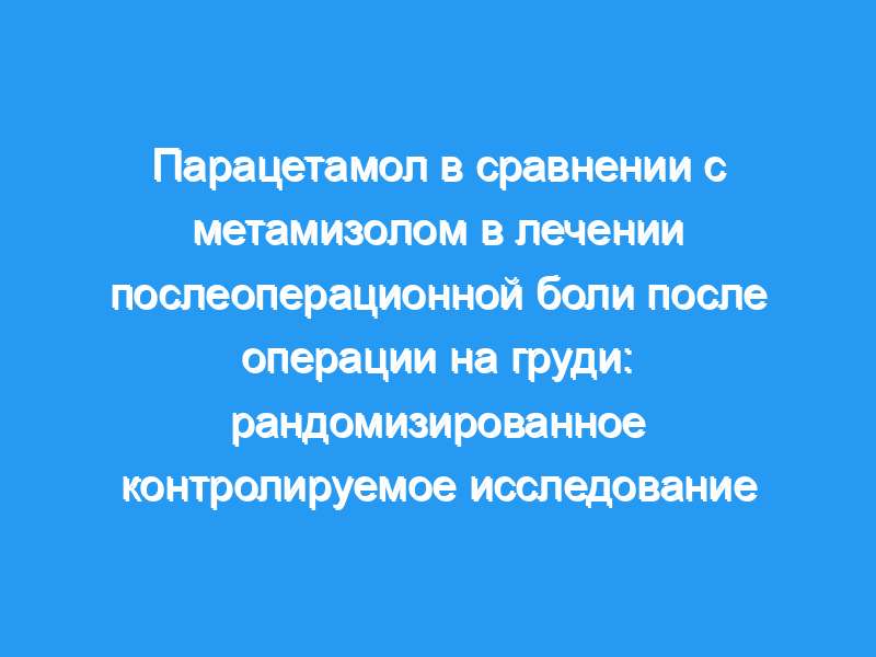 Ни внутривенный парацетамол, ни внутривенный метамизол не обеспечили значительного снижения общего послеоперационного потребления морфина по сравнению с плацебо при лечении послеоперационной боли после плановой операции на груди. Введение парацетамола привело к значительному сокращению числа пациентов, нуждающихся в опиоидных анальгетиках для достижения адекватного послеоперационного обезболивания.
