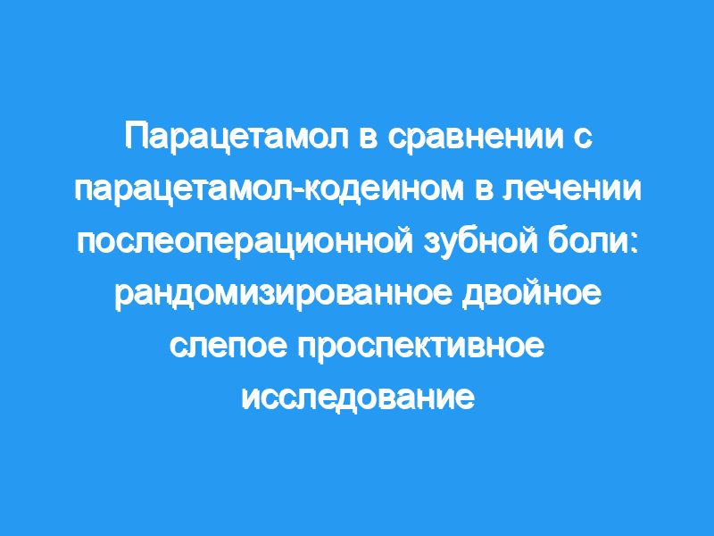Кодеин часто добавляют к парацетамолу для лечения послеоперационной зубочелюстной боли, исследования показали эффективность в облегчении послеоперационной боли в высоких дозах, но за счет побочных эффектов со стороны центральной нервной системы и желудочно-кишечного тракта. Не проводилось ни одного исследования для сравнения эффективности и безопасности парацетамола 1000 мг с парацетамолом 1000 мг в сочетании с кодеином 30 мг. Метод: Было проведено рандомизированное одноцентровое двойное слепое проспективное параллельное групповое исследование для сравнения парацетамола в дозе 1000 мг с парацетамолом в дозе 1000 мг с кодеином в дозе 30 мг для облегчения боли после хирургического удаления пораженных третьих моляров и проанализировано на основе намерения лечить (ITT). Восемьдесят два пациента были распределены случайным образом для приема любого препарата максимум в трех дозах. Пациенты регистрировали интенсивность своей боли через час после операции и ежечасно после нее в течение 12 часов.