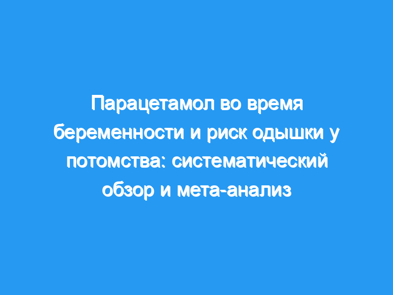 Было выявлено шесть исследований, которые были включены в мета-анализ. Возраст обследованных детей варьировался от 30 до 84 месяцев. Совокупный случайный эффект ИЛИ риск текущего одышки у детей женщин, которые подвергались воздействию любого парацетамола на любой стадии беременности, составил 1,21 (95% доверительный интервал 1,02-1,44). Особенности исследований по-разному включали связь с приемом парацетамола во всех триместрах беременности и ассоциацию с персистирующей астмой, тяжелой астмой и атопией. Заключение и клиническая значимость: Применение парацетамола во время беременности связано с повышенным риском развития астмы у детей. Срочно требуются дополнительные исследования для определения влияния парацетамола во время беременности на риск одышки у потомства, чтобы можно было дать соответствующие рекомендации в области общественного здравоохранения.