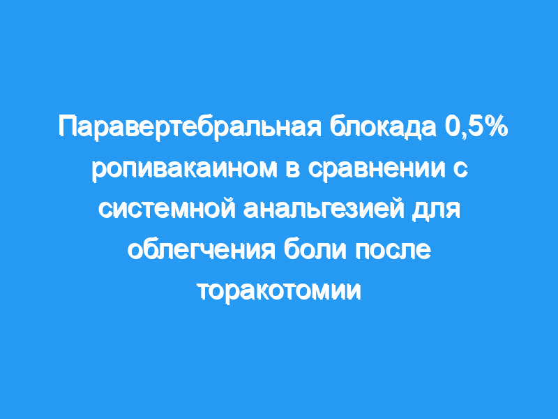 Непрерывная паравертебральная инфузия 0,5% ропивакаина улучшает контроль боли после торакальной операции с использованием мультимодального обезболивающего подхода.