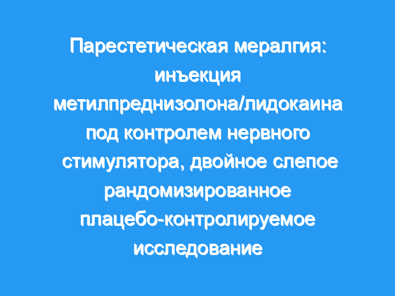 Парестетическая мералгия — это мононевропатия латерального бедренного кожного нерва. Распространенной терапией являются инъекции кортикостероидов. Целью этого исследования был анализ эффекта инъекции метилпреднизолона/лидокаина по сравнению с плацебо.