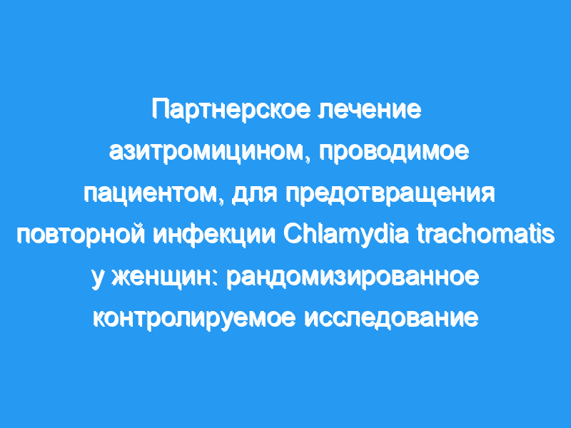 Повторное заражение C. trachomatis увеличивает риск серьезных последствий: воспалительных заболеваний органов малого таза, внематочной беременности, бесплодия и хронической тазовой боли. Значительная часть женщин, получавших лечение от инфекции C trachomatis, повторно заражаются от необработанного полового партнера мужского пола в первые несколько месяцев после лечения. Необходимы эффективные стратегии для обеспечения партнерского лечения. Цель: Цель исследования состояла в том, чтобы определить, можно ли уменьшить повторные инфекции C trachomatis, давая женщинам дозы азитромицина для доставки половым партнерам мужского пола. План исследования: Многоцентровое рандомизированное контролируемое исследование было проведено среди 1787 женщин в возрасте от 14 до 34 лет с неосложненной генитальной инфекцией C trachomatis, диагностированной в клиниках планирования семьи, подростков, заболеваний, передающихся половым путем, и первичной медико-санитарной помощи или неотложной помощи или других больничных отделениях в пяти городах США. Женщины, получавшие лечение от инфекции, были рандомизированы в одну из двух групп: лечение, проводимое пациентом-партнером (в котором им давали дозу азитромицина для доставки каждому половому партнеру) или самостоятельное направление (в котором их просили направить своих сексуальных партнеров на лечение). Основным показателем результата была ДНК C trachomatis, обнаруженная с помощью лигазной цепной реакции мочи (LCR) или полимеразной цепной реакции (PCR) через 4 месяца после лечения.