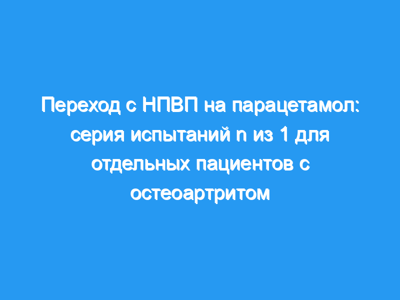 Результаты n из 1 испытаний варьировались у разных пациентов. n из 1 испытаний могут быть использованы для определения того, какое лечение лучше всего подходит для конкретного человека, что позволяет избежать ненужного длительного лечения НПВП. Однако практические причины могут привести к тому, что пациенты перейдут с НПВП на парацетамол или нет.