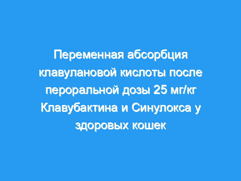 Целью данного исследования было рассчитать фармакокинетические параметры и определить параметры, основанные на индивидуальных кривых зависимости концентрации амоксициллина и клавулановой кислоты в плазме крови у кошек, которые могут определять наблюдаемые различия в абсорбции обоих препаратов.