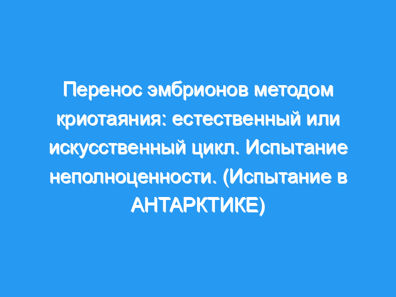 Авторы исследования: Eva R Groenewoud, Nick S Macklon, Ben J Cohlen, ANTARCTICA trial study group