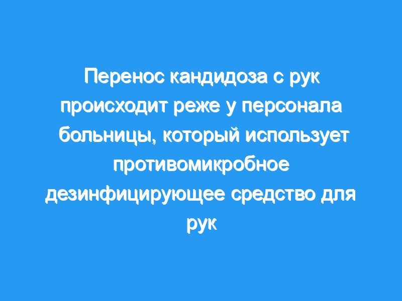 Использование дезинфицирующих средств для рук, содержащих противомикробные средства, более эффективно, чем мытье рук водой с мылом, в снижении распространения кандидоза на руках персонала больницы. Персоналу больницы рекомендуется использовать противомикробное дезинфицирующее средство для рук в отделениях, где существует высокий риск заражения кандидозом.