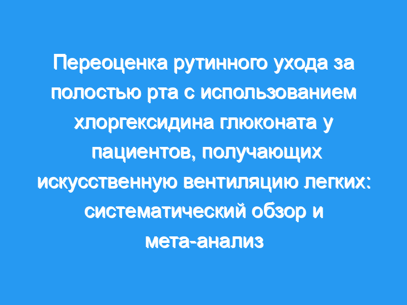 Оценить влияние рутинного ухода за полостью рта с хлоргексидином на результаты, ориентированные на пациента, у пациентов, получающих искусственную вентиляцию легких. Источники данных: PubMed, Embase, CINAHL и Web of Science с момента создания до июля 2013 года без ограничений по дате или языку. Выбор исследования: Рандомизированные клинические испытания, сравнивающие хлоргексидин и плацебо у взрослых, получающих искусственную вентиляцию легких. Из 171 уникального упоминания 16 исследований, включавших 3630 пациентов, соответствовали критериям включения. Извлечение и обобщение данных: Подходящие испытания были независимо определены, оценены на предмет риска предвзятости и извлечены 2 исследователями. Разногласия были разрешены консенсусом. Мы разделили исследования на кардиохирургические и некардиохирургические, а также открытые и двойные слепые исследования. Подходящие исследования были объединены с помощью мета-анализа случайных эффектов. Основные результаты и меры: пневмония, связанная с ИВЛ, смертность, продолжительность искусственной вентиляции легких, продолжительность пребывания в отделении интенсивной терапии и стационаре, назначение антибиотиков.