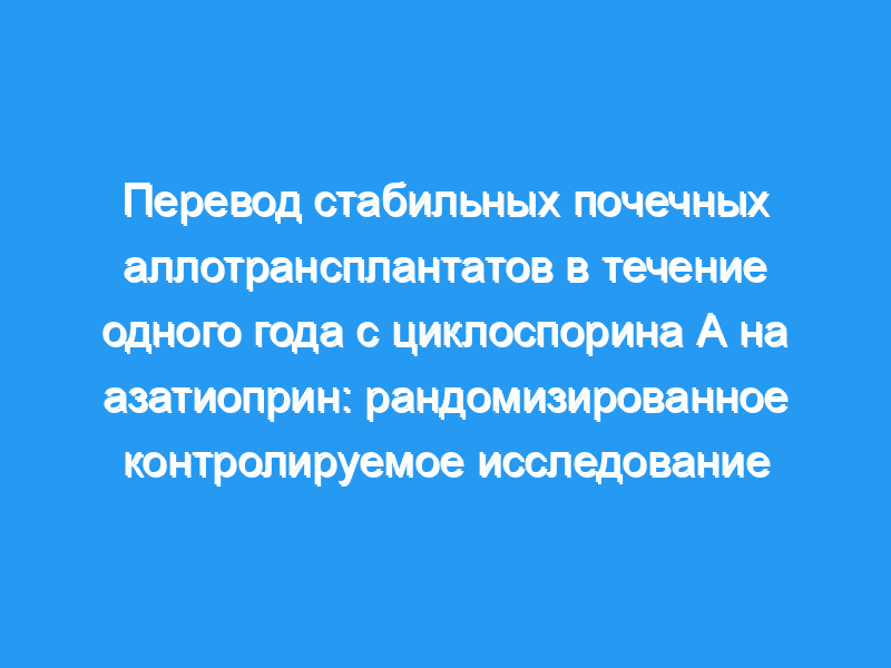 Семьдесят семь стабильных, недиабетических, трупных почечных трансплантатов были рандомизированы через 1 год для перевода с циклоспорина А на азатиоприн или продолжения приема циклоспорина А. Преднизолон был увеличен в два раза в течение периода перевода, и был 3-недельный период перекрытия, в течение которого вводили азатиоприн и циклоспорин А.