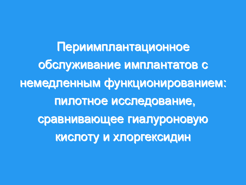 Полученные результаты указывают на важность поддерживающего протокола при имплантации имплантатов с немедленным функционированием. Оба химических вещества являются эффективными инструментами для ухода за имплантами. Авторы предполагают, что может быть выгодно вводить ГК в первые 2 месяца, а CHX — от 2 до 6 месяцев.
