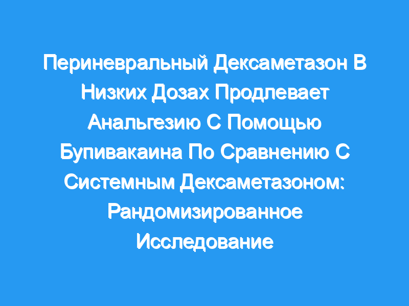 У пациентов, перенесших артроскопию плечевого сустава, низкие дозы периневрального дексаметазона (1 мг) в сочетании с 15 мл 0,5% бупивакаина увеличивали среднее время до полного исчезновения боли от ISB по сравнению с 1 мг внутривенного дексаметазона. Однако степень пролонгации была меньше, чем априори определенная минимальная клинически значимая разница в 5 часов. Регистрация клинического испытания: Это исследование было зарегистрировано на Clinicaltrials.gov , идентификатор NCT02506660.