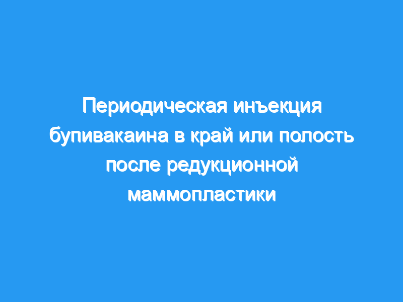 Послеоперационная периодическая инфузия бупивакаина снизила потребление морфина после редукционной маммопластики, и обезболивающий эффект, по-видимому, не зависел от места введения инфузии.