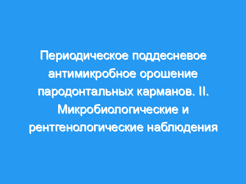 Результаты показали, что периодическое поддесневое антимикробное орошение само по себе имело только ограниченное и временное воздействие на поддесневую микрофлору.(АННОТАЦИЯ СОКРАЩЕНА ДО 250 СЛОВ).