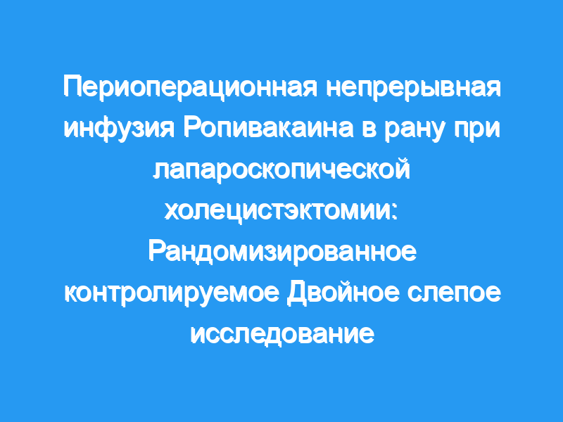 В этом рандомизированном контролируемом двойном слепом клиническом исследовании изучалось влияние вливания ропивакаина на боль после лапароскопической холецистэктомии.