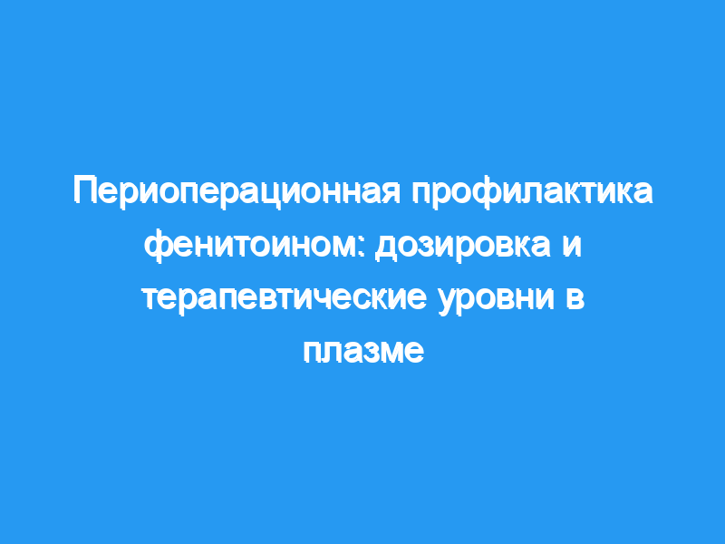 В течение первых шести часов после нагрузочной дозы уровни фенитоина в плазме крови упали ниже терапевтического диапазона (10-20 мг/л) у 7 из 10 пациентов, получавших 10 мг/кг, в то время как у пациентов при лечении 15 мг/кг уровни PHT в плазме крови всегда находились в терапевтическом диапазоне (P <, or = 0,0001). Поддерживающая доза PHT была достаточной для поддержания уровней в плазме крови в терапевтическом диапазоне у 8 пациентов в группе A и у всех пациентов в группе B. Сделан вывод о том, что нагрузочная доза 15 мг/кг с последующим послеоперационным лечением необходима для обеспечения терапевтических уровней фенитоина в плазме крови в ближайшем послеоперационном периоде, когда риск судорог очень высок.