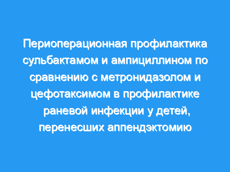 Сто детей в возрасте от 5 до 14 лет, перенесших экстренную аппендэктомию, были включены в проспективное рандомизированное исследование, сравнивающее сульбактам и ампициллин (SA) с метронидазолом и цефотаксимом (MC) в качестве профилактики инфекции послеоперационной раны.