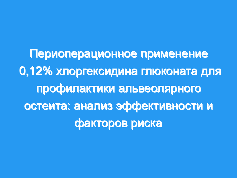 Эти данные подтверждают, что профилактическое применение 0,12% раствора для полоскания рта хлоргексидина глюконата приводит к значительному снижению частоты альвеолярного остеита после удаления пораженных третьи коренные зубы нижней челюсти. Кроме того, было подтверждено, что использование оральных контрацептивов у женщин является фактором риска развития альвеолярного остеита.