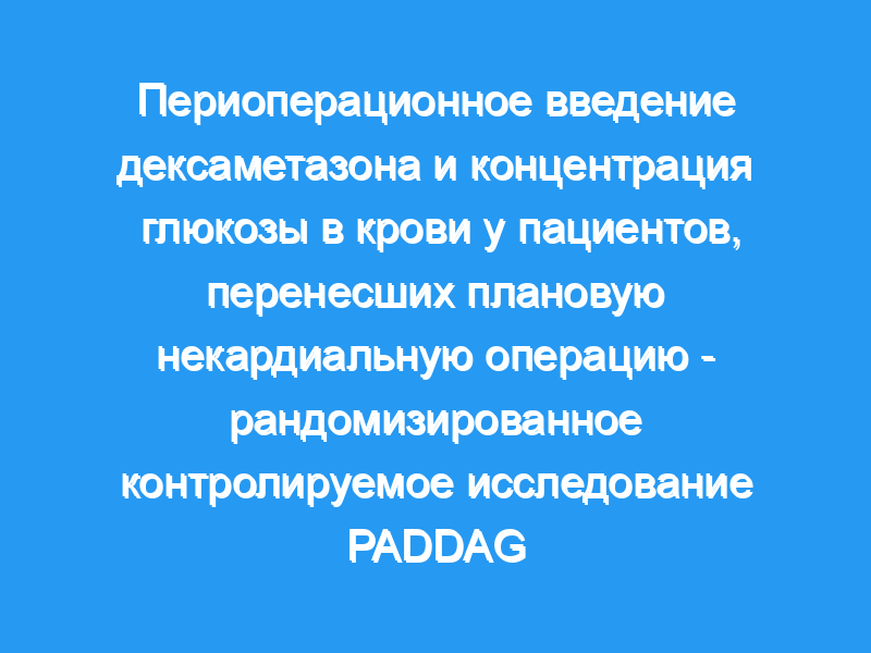 Оценить влияние однократной дозы интраоперационного дексаметазона на уровень глюкозы в крови после операции. Дизайн: Многоцентровое, стратифицированное, рандомизированное исследование.