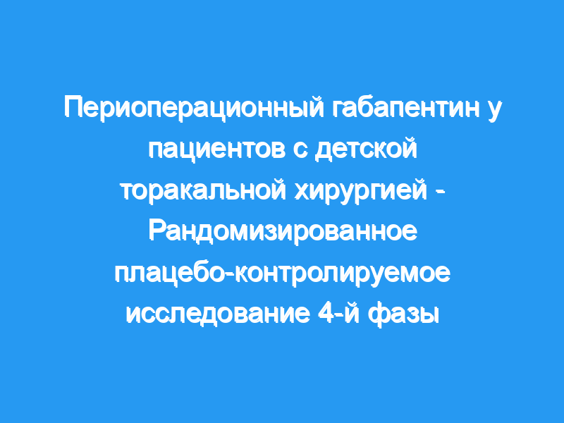 Периоперационное введение габапентина привело к снижению послеоперационной тревожности у педиатрических пациентов, перенесших процедуру Равича.