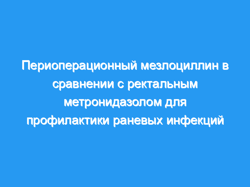 Частота инфицирования раны в группе метронидазола составила 15,9% и существенно не отличалась от частоты инфицирования раны при использовании мезлоциллина (10,4%). Таким образом, периоперационный мезлоциллин, по-видимому, является эффективным методом профилактики раневой инфекции после аппендицэктомии и может предложить более дешевую альтернативу внутривенному интраоперационному введению метронидазола в случаях, когда дооперационные свечи с метронидазолом были исключены.