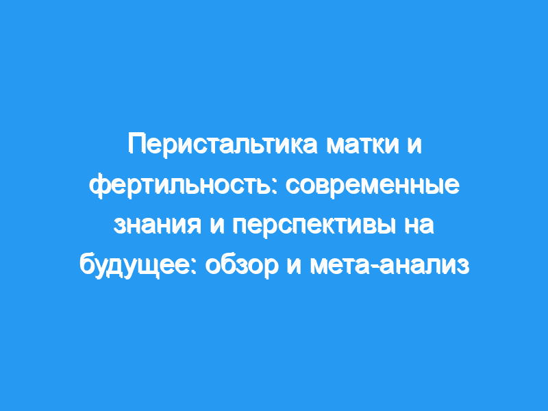 В этом обзорном документе мы предоставляем обзор современных знаний о перистальтике матки (UP), основанных в доступной литературе.
