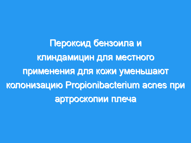 Propionibacterium acnes — грамположительный анаэроб, который может привести к разрушительным послеоперационным инфекциям плеча. Целью этого исследования было выяснить, снижает ли предоперационная подготовка кожи пероксидом бензоила и клиндамицином частоту колонизации P. acnes во время артроскопии плеча.