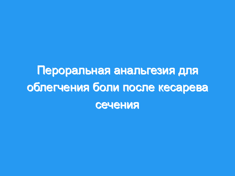 Пероральная анальгезия — удобная и широко используемая форма обезболивания после кесарева сечения. Она включает в себя различные лекарства, используемые в различных дозах отдельно или в сочетании с другими формами обезболивания.