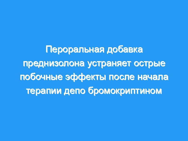 Одновременный пероральный прием преднизолона значительно снижает частоту острых побочных эффектов после приема бромокриптина в виде депо. Две дозы преднизолона по 20 мг, вводимые с интервалом в 12 часов, могут быть использованы для предотвращения побочных эффектов, вызванных агонистами дофамина, в начале лечения депо-бромокриптином, а также могут быть полезны при лечении побочных эффектов, связанных с другими препаратами-агонистами дофамина.