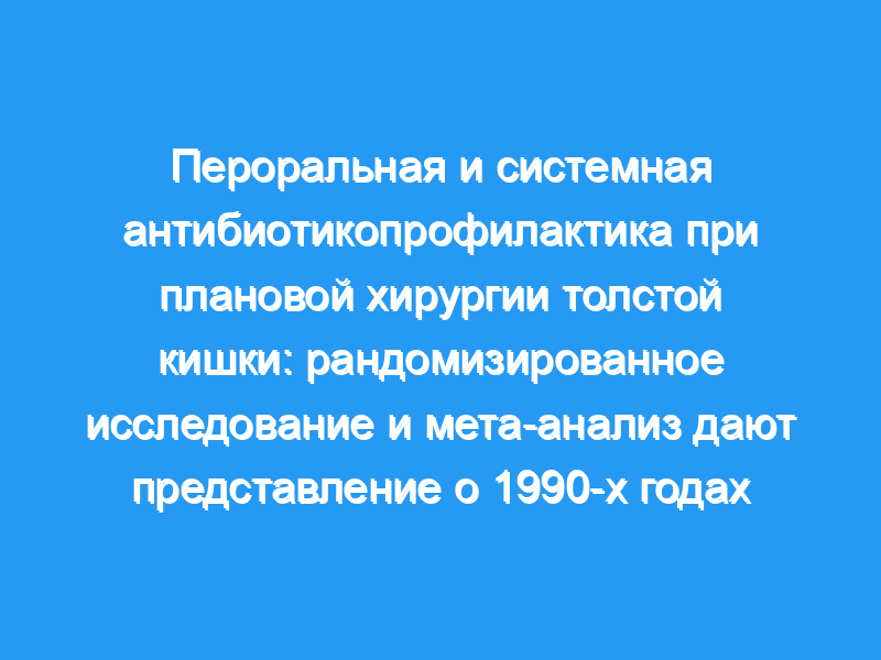 При плановой хирургии толстой кишки комбинированные пероральные и системные антибиотики превосходят системные антибиотики в предотвращении инфекций в месте операции. Перорально вводимые антибиотики повышают эффективность за счет уменьшения бактериальной нагрузки на толстую кишку и загрязнения раневого жира, что связано с послеоперационной раневой инфекцией. Метаанализ рандомизированных клинических исследований, проведенных с 1975 по 1995 год, подтверждает эти выводы.< / p>