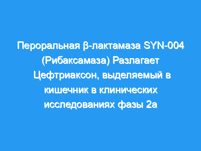 SYN-004 (рибаксамаза) представляет собой β-лактамазу, предназначенную для перорального введения одновременно с внутривенным введением β-лактамных антибиотиков, включая большинство пенициллинов и цефалоспоринов.Предполагаемый механизм действия рибаксамазы заключается в разрушении избытка β-лактамного антибиотика, который выводится в тонкий кишечник.