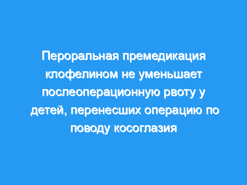 Мы оценили влияние перорального приема клофелина на послеоперационную рвоту (POV) у детей, перенесших операцию по поводу косоглазия.