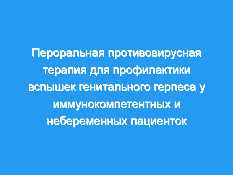 Сравнить эффективность и безопасность трех пероральных противовирусных препаратов (ацикловира, фамцикловира и валацикловира), назначаемых для подавления вспышек генитального герпеса у небеременных пациенток. Методы поиска: Мы провели поиск в Центральном реестре контролируемых исследований Кокрейна (CENTRAL), MEDLINE, EMBASE, поисковом портале Платформы Регистрации международных клинических испытаний Всемирной организации здравоохранения и базах данных фармацевтических компаний до февраля 2014 года. Мы также провели поиск в базах данных Управления по санитарному надзору за качеством пищевых продуктов и медикаментов США и в материалах семи конгрессов максимум за 10 лет. Мы связались с авторами исследований и фармацевтическими компаниями. Критерии отбора: Мы отобрали параллельные групповые и перекрестные рандомизированные контролируемые исследования, включающие пациентов с рецидивирующим генитальным герпесом, вызванным ВПГ, независимо от типа (ВПГ-1, ВПГ-2 или неопределенный), с по крайней мере четырьмя рецидивами в год (исследования, касающиеся ВИЧ-позитивных пациентов с вирусом иммунодефицита человека или беременные женщины не имели права) и сравнение подавляющего перорального противовирусного лечения с пероральным ацикловиром, фамцикловиром и валацикловиром по сравнению с плацебо или другим подавляющим пероральным противовирусным лечением. Сбор и анализ данных: Два автора обзора независимо отобрали подходящие испытания и извлекли данные. Для оценки риска предвзятости был использован инструмент «Риск предвзятости». Эффект лечения измерялся отношением риска (RR) возникновения по крайней мере одного рецидива генитального герпеса. Объединенные RR были получены с помощью обычного попарного мета-анализа. Сетевой метаанализ позволил оценить все возможные сравнения противовирусных препаратов «два на два».