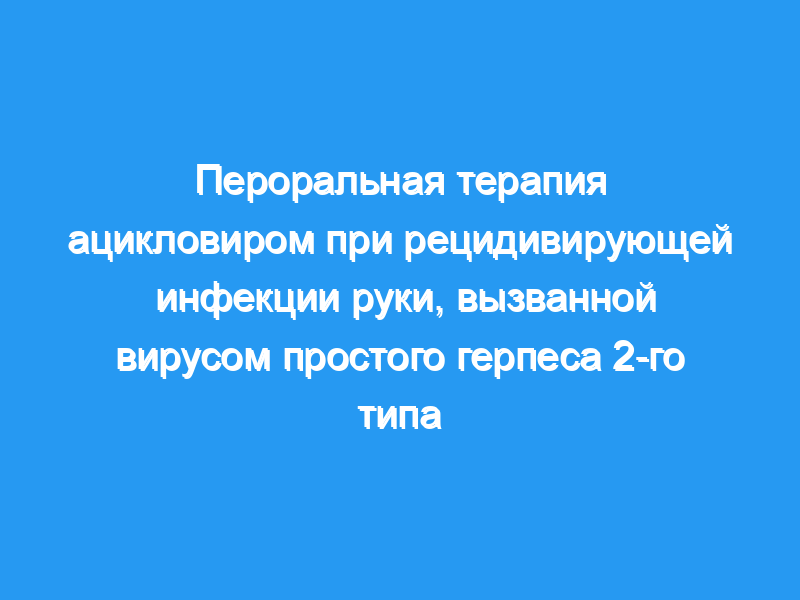 Ацикловир был оценен как средство для лечения рецидивирующей инфекции кисти, вызванной вирусом простого герпеса 2-го типа, в двойном слепом плацебо-контролируемом перекрестном исследовании.