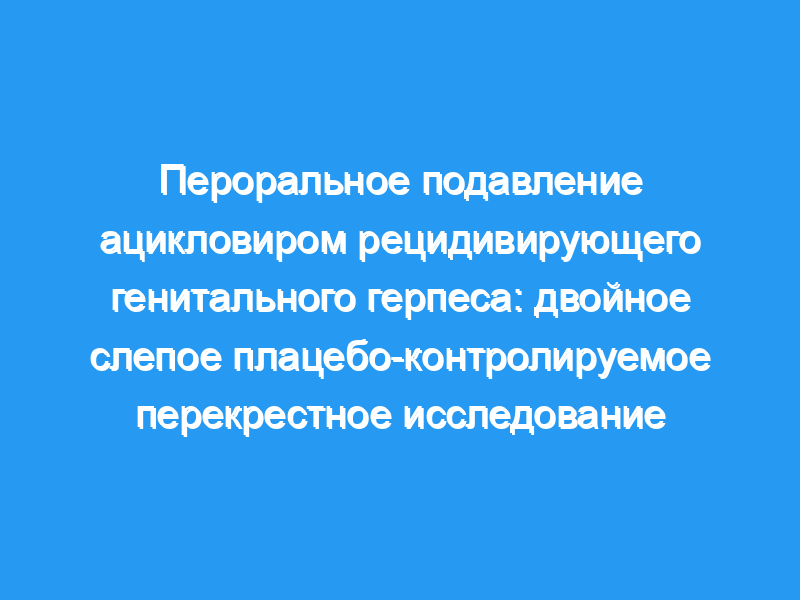 Рандомизированное двойное слепое плацебо-контролируемое перекрестное исследование было проведено у 31 пациента мужского пола с часто рецидивирующим генитальным герпесом в анамнезе, который последовательно получал 200 мг ацикловира и соответствующее плацебо перорально четыре раза в день в течение 12 недель.