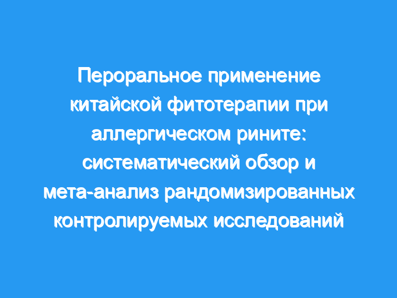 Китайская фитотерапия (CHM) уже давно используется при аллергическом рините (AR). Целью этого систематического обзора было изучение клинических эффектов и безопасности перорального CHM при АР путем сравнения его с западными лекарственными средствами (WM). По состоянию на 27 мая 2020 года был проведен поиск по девятнадцати базам данных. Были включены рандомизированные контролируемые исследования (РКИ), оценивающие влияние CHM на первичные или вторичные исходы по сравнению с WM, в любом возрасте пациентов.