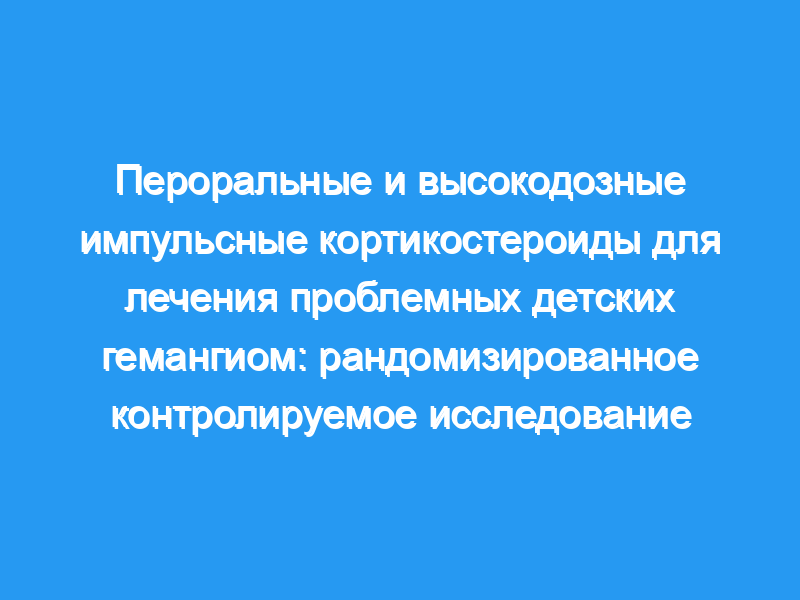 Пероральные системные кортикостероиды являются основой лечения проблемных гемангиом, однако текущая информация основана на единичном опыте и ретроспективных исследованиях. Мы стремились определить, эффективны ли системные стероиды при пролиферирующей гемангиоме, и сравнить эффективность и безопасность 2 методов лечения кортикостероидами. Пациенты и методы: Двадцать пациентов с проблемными гемангиомами младенческого возраста были рандомизированы на ежедневное пероральное введение преднизолона или ежемесячное внутривенное введение метилпреднизолона импульсами. Их клинические исходы (улучшение с использованием визуальной аналоговой оценки) и нежелательные явления сравнивались через 3 месяца от исходного уровня и в возрасте 1 года. Данные о возможных суррогатных маркерах ангиогенеза были доступны в течение первых 3 месяцев.