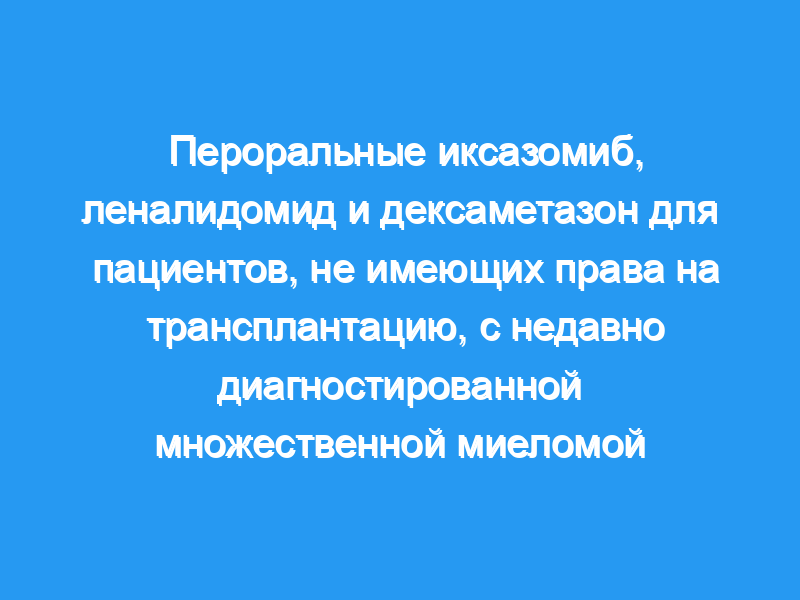 После 18 циклов дексаметазон был отменен и лечение продолжено. с использованием уменьшенных доз иксазомиба (3 мг) и леналидомида (10 мг) до прогрессирования/токсикоза.