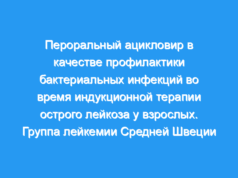 Мы проспективно проверили гипотезу о том, что профилактика инфицирования вирусом простого герпеса ацикловиром может также снизить частоту бактериальных инфекций у взрослых пациентов с острым лейкозом.
