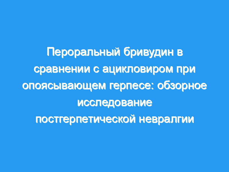 Частота PHN, определяемая как связанная с опоясывающим лишаем боль, возникающая или сохраняющаяся после заживления сыпи, была значительно ниже у реципиентов бривудина (32,7%), чем у реципиентов ацикловира (43,5%, Р=0,006). Средняя продолжительность ПНН была аналогичной при применении бривудина (173 дня) и ацикловира (164 дня, Р=0,270). Несмотря на некоторые методологические недостатки, характерные для этого типа исследований, настоящее исследование предоставляет первые доказательства того, что лечение бривудином во время острого опоясывающего герпеса благоприятно влияет на частоту ФН у иммунокомпетентных пожилых пациентов с опоясывающим герпесом.