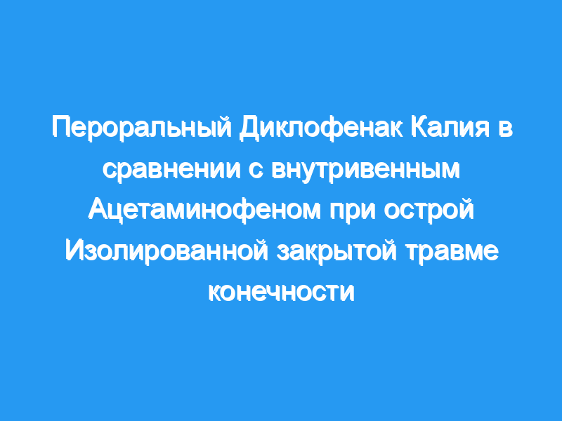 Целью этого исследования было сравнить обезболивающий эффект перорального диклофенака калия по сравнению с внутривенным введением ацетаминофена у пациентов с травма конечностей.