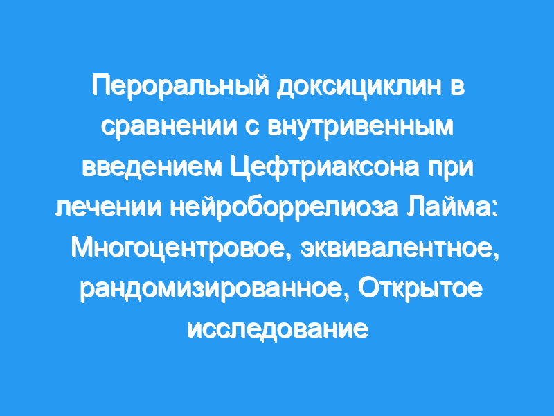 Пероральный доксициклин столь же эффективен, как и внутривенный цефтриаксон при лечении LNB. Регистрация клинических испытаний: NCT01635530 и EudraCT 2012-000313-37.