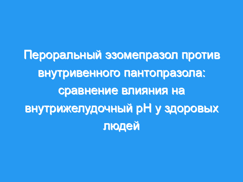 Сравнить подавление кислотности (время при pH>,3,0, 4,0, 5,0 и 6,0), вызванное стандартными дозами перорального эзомепразола и внутривенного пантопразола у здоровых людей.