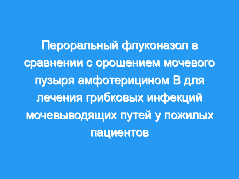 В этом рандомизированном исследовании сравниваются эффективность и безопасность перорального приема флуконазола с эффективностью и безопасностью орошения мочевого пузыря амфотерицином В для лечения фунгурии (>, or = 10000 кое/мл мочи) у 109 госпитализированных пожилых пациентов.
