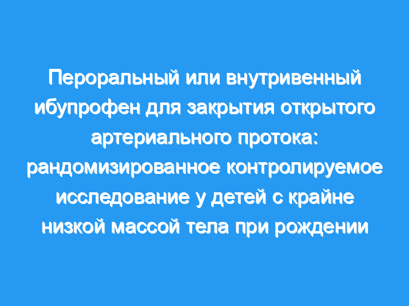 Сравнить эффективность и безопасность перорального и внутривенного введения ибупрофена для фармакологического закрытия открытого артериального протока (PDA) у менее зрелых недоношенных детей. Дизайн: Проспективное рандомизированное контролируемое исследование.