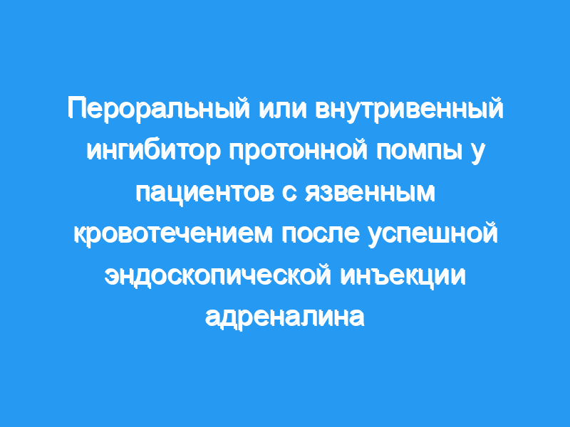 Мы стремились оценить клиническую эффективность перорального и внутривенного (в/в) ингибитора протонной помпы (ИПП) в регулярных дозах после эндоскопической инъекции адреналина у пациентов с язвенным кровотечением.